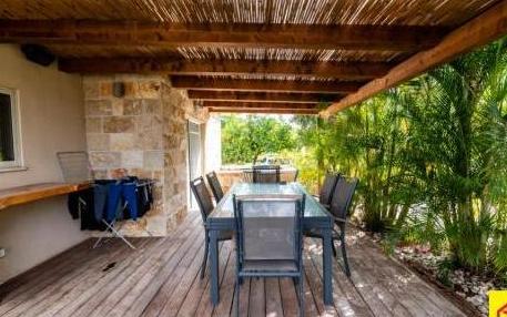 מטבח כפרי + אי, קמין, יציאה לגינה היקפית גדולה עם דק ופרגולה. מיקום שקט, ירוק ופסטורלי. לגור באווירה של מושב. נכס 149637