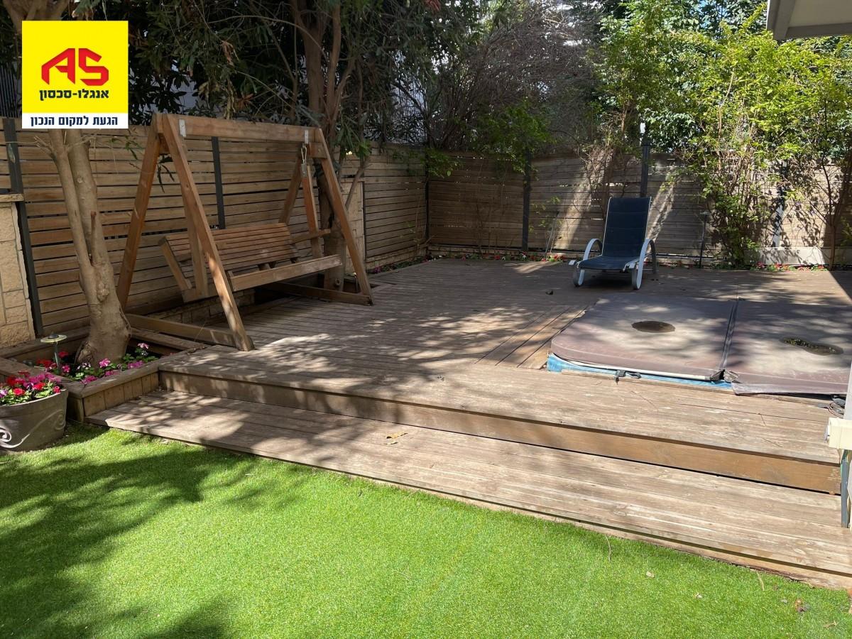 דירת גן במערבית, 4 חדרים ( במקור 5) ,סוויטת הורים מפנקת ,עוד שני חדרי שינה גדולים אחד מהם עם יציאה לגינה.מרפסת מקורה נוספת שיכולה לשמש כחדר עבודה ,גינה היקפית עם ג'קוזי בחצר, חשמל חכם בכל הבית, שיוך